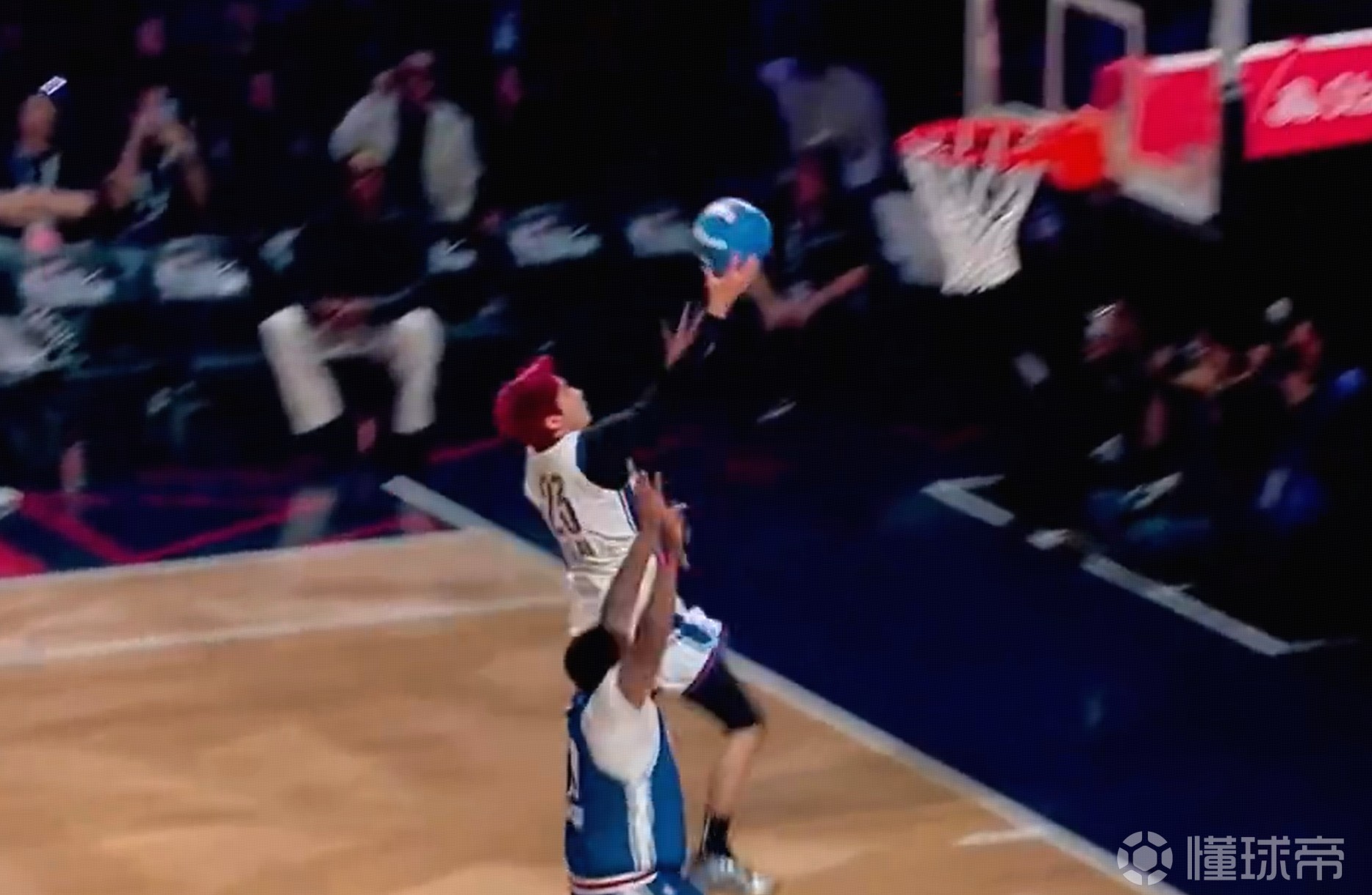 致敬偶像,王鹤棣下快攻接林书豪长传完成上篮,随后霸王步庆祝