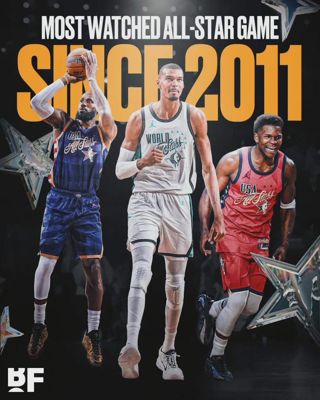全明星收视提升87%!创近15年最高纪录!谢谢你,文班亚马
