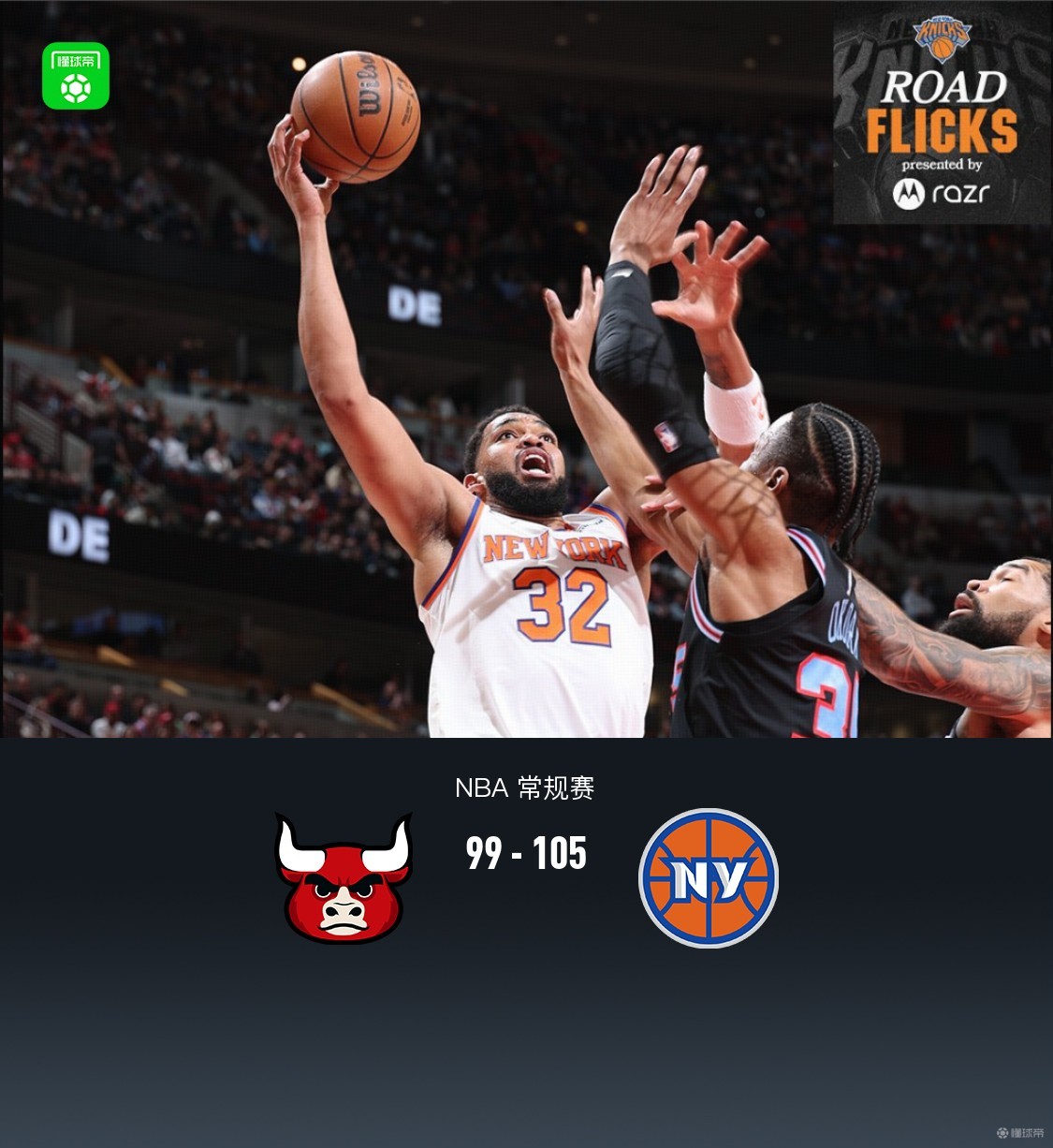 - 2026-02-24 05:15 尼克斯105-99力克公牛,唐斯28+11,布伦森19分