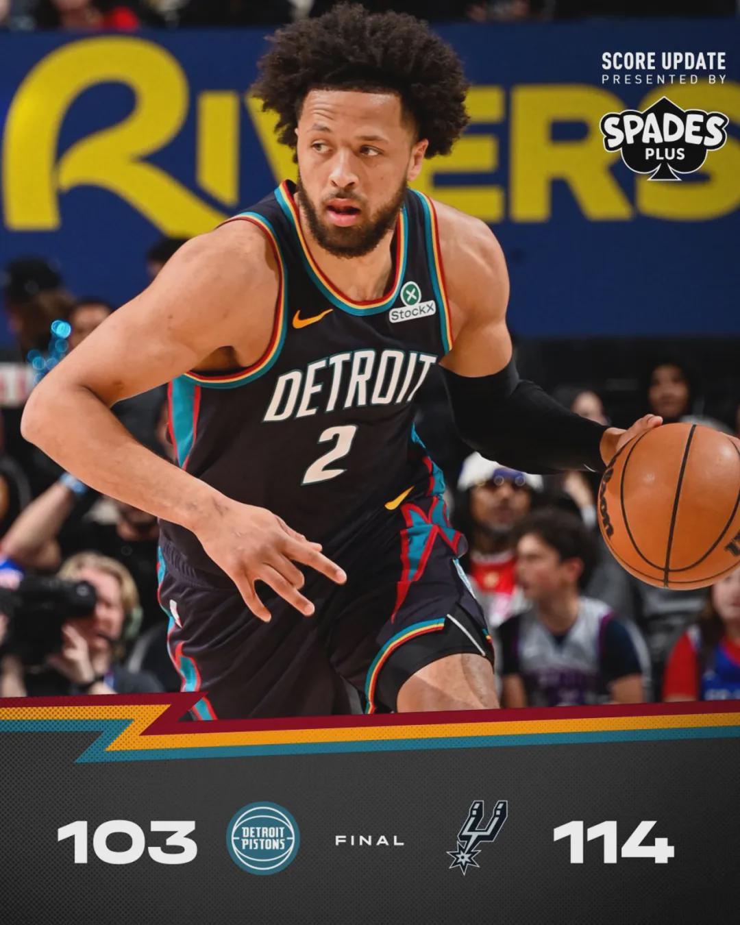 活塞进攻断电,第三节仅得20分,马刺单节得到26分。三节战罢,马刺83-75领先到8分。坎宁安18次出手仅得15分,文班12次出手仅得10分。两人的直接对话,文班亚马大帽坎宁安!瓦塞尔效率非常高,前三节12中8独得22分。