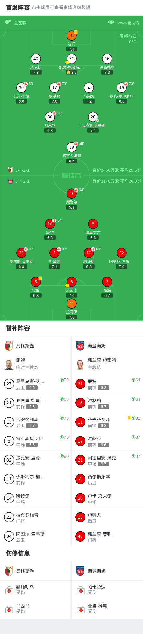 北京时间2月15日德国足球顶级联赛 联赛 第22轮,奥格斯堡主场对阵海登海姆。奥格斯堡克劳德-毛里斯破门。最终比分奥格斯堡 1-0 海登海姆。