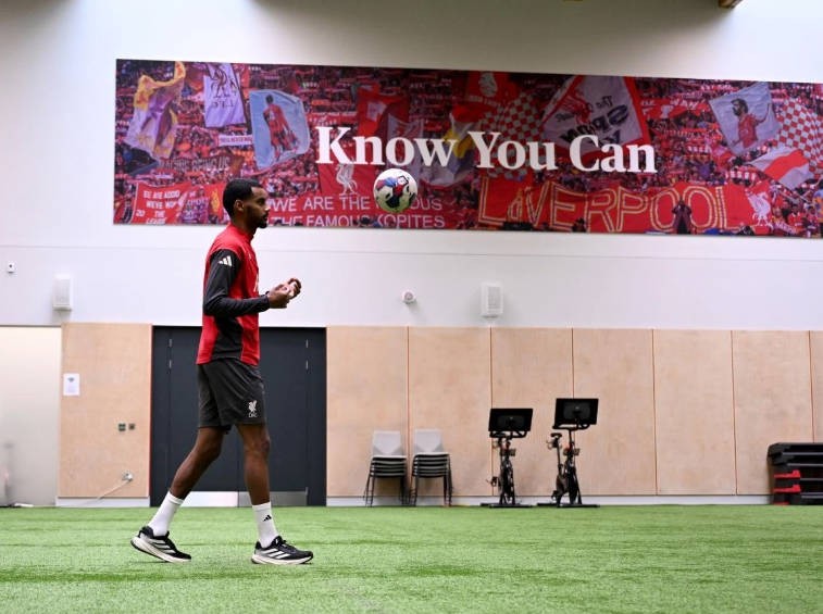 康复进行中,利物浦官方晒伊萨克在室内进行个人训练照片
