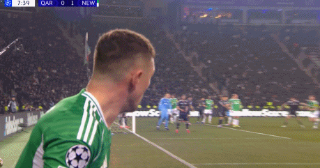 第8分钟,特里皮尔主罚角球开出,皮球顶出来,特里皮尔再次传中,佳夫头球再下一城,纽卡2-0卡拉巴赫