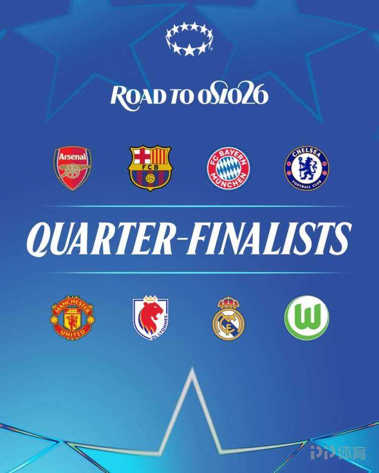 女足欧冠1/8决赛战罢,8强对阵出炉。