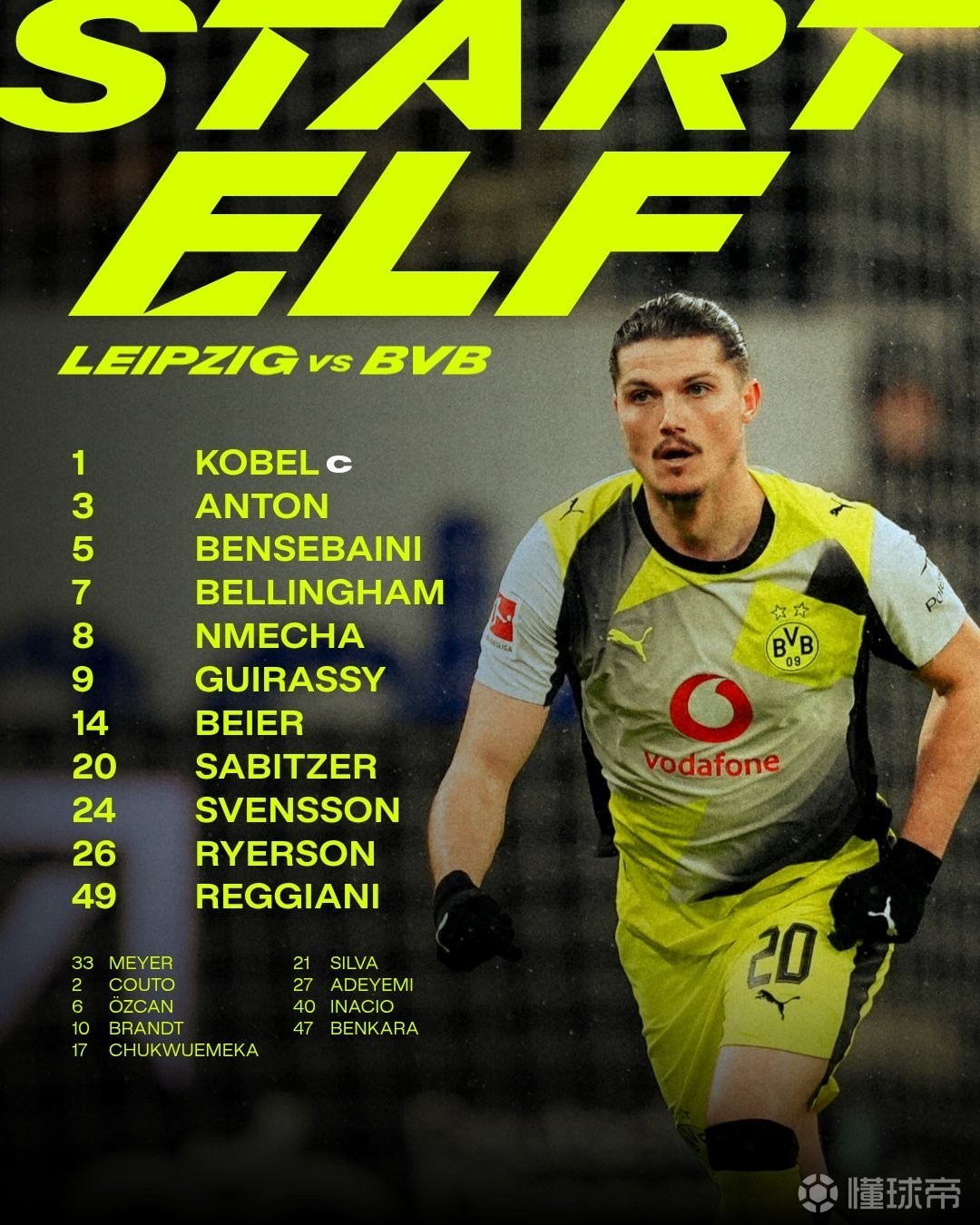 多特客战莱比锡:吉拉西PK迪奥曼德,拜尔、小贝林厄姆出战