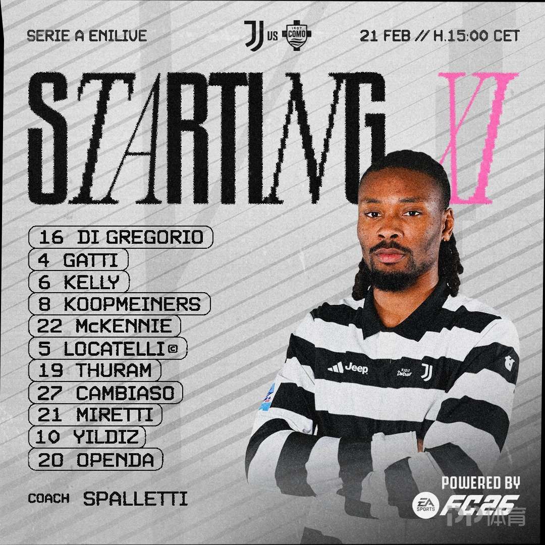 尤文vs科莫首发:伊尔迪兹、图拉姆、洛卡特利出战