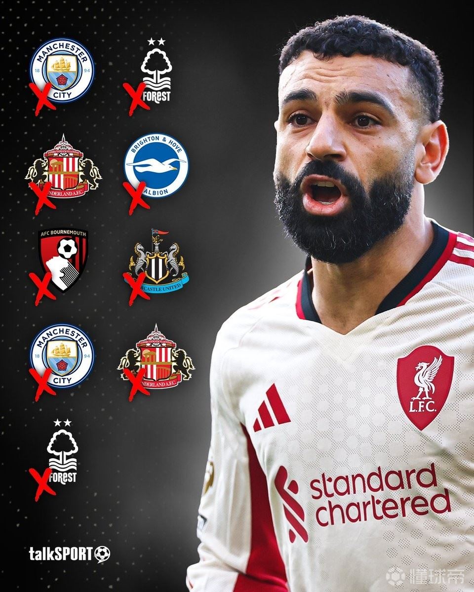 据数据统计,萨拉赫已连续9场英超联赛没有进球,这是他职业生涯首次遭遇如此长时间的英超进球荒。