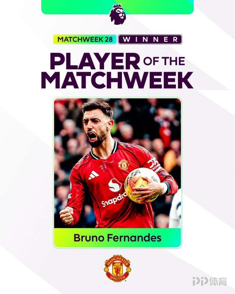 传射建功!官方:B费当选英超第28轮最佳球员